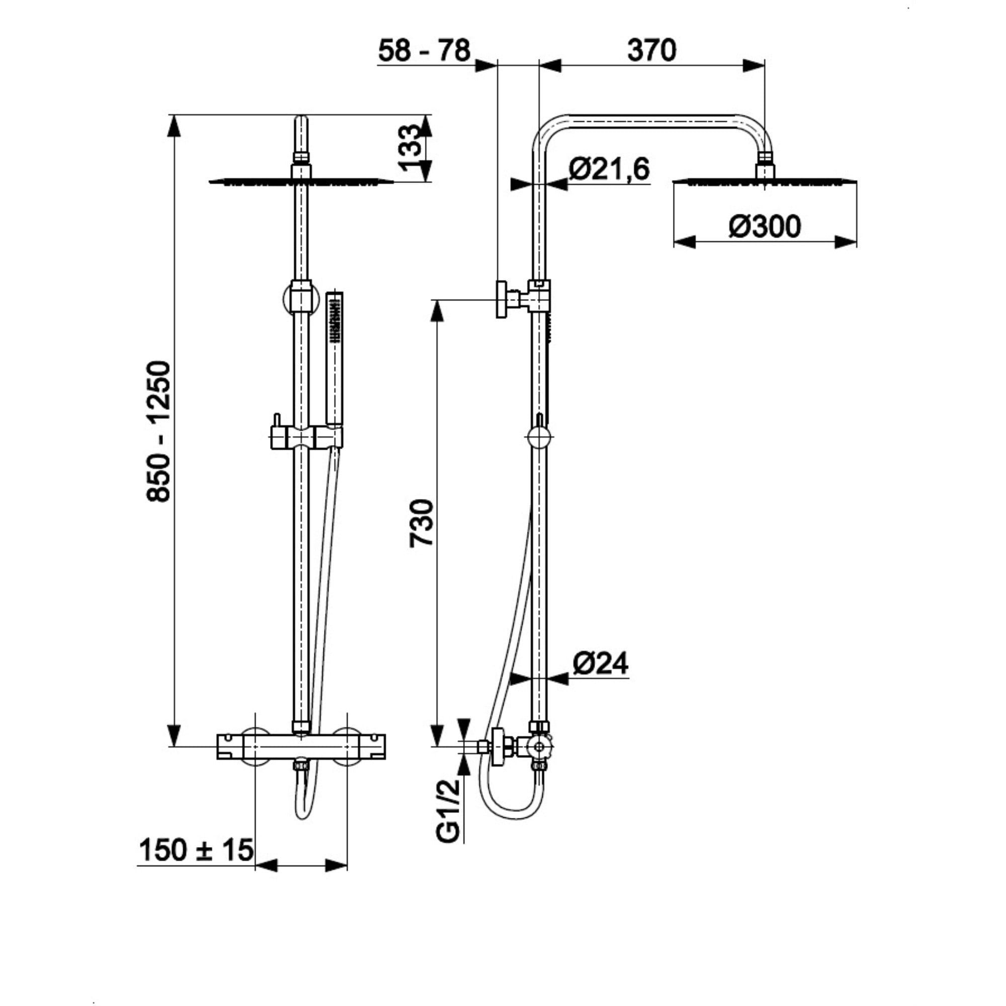 | Длина кронштейна для верхнего душа, мм | 370 |