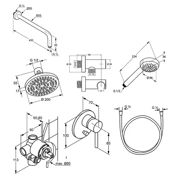 | Длина кронштейна для верхнего душа, мм | 430 |