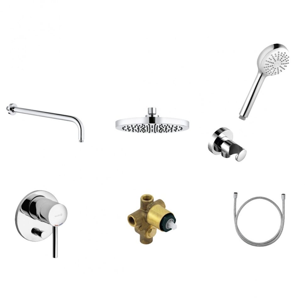 | Комплектация | Смеситель скрытого монтажа, Держатель для ручной лейки, Душевой шланг, Крепление для монтажа, Ручная лейка |