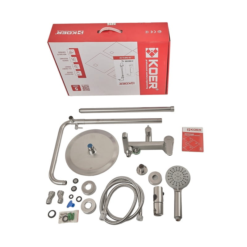 Душевая система Koer KI-56016-02 с регулировкой высоты, нержавеющая сталь, сатин (KR4791)