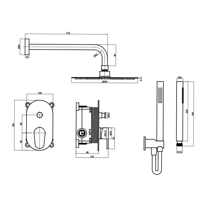 | Длина кронштейна для верхнего душа, мм | 312 |
