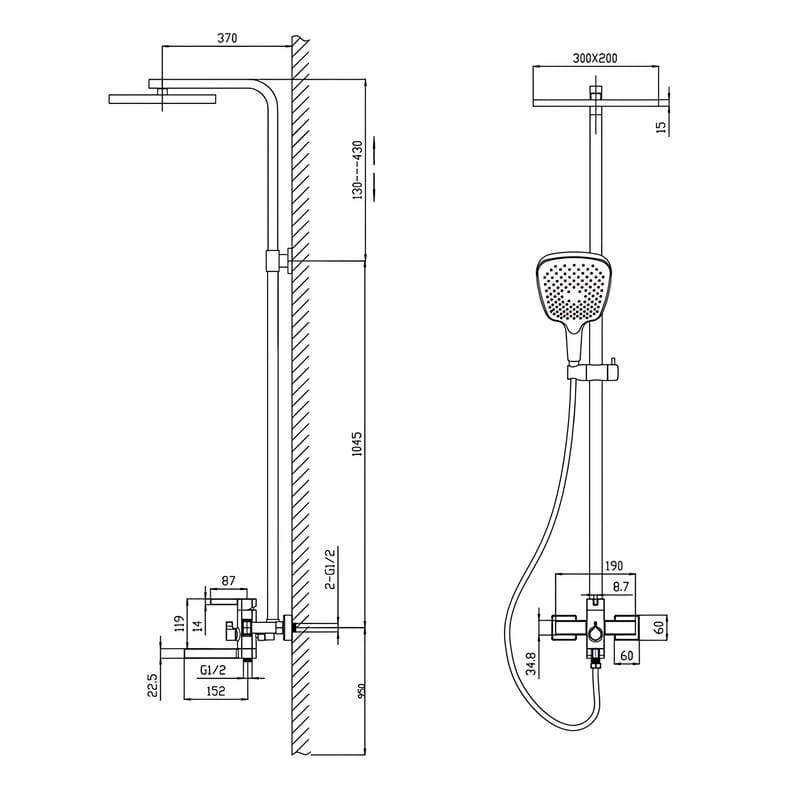 | Диаметр верхнего душа | 300×200 мм |