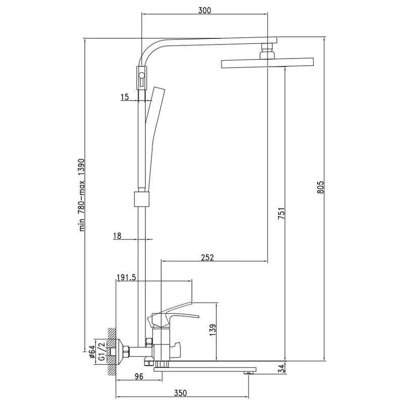 | Длина кронштейна для верхнего душа, мм | 300 |