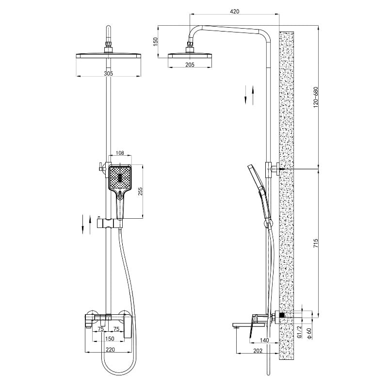 | Длина кронштейна для верхнего душа, мм | 420 |