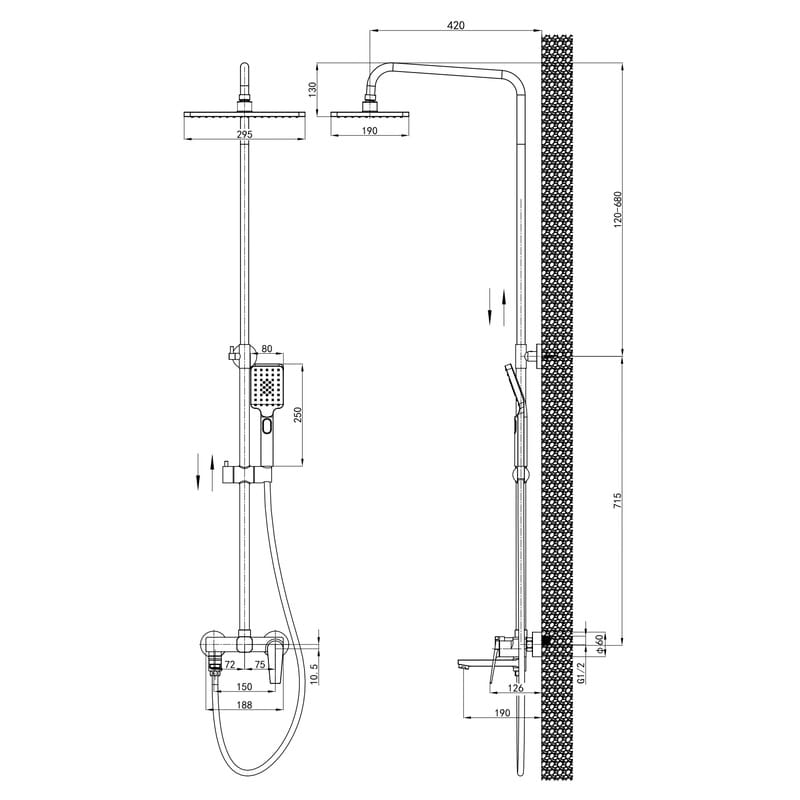 | Длина кронштейна для верхнего душа, мм | 420 |