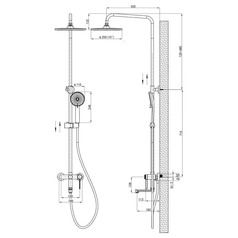 | Длина кронштейна для верхнего душа, мм | 425 |