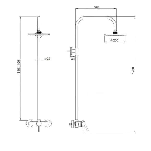 | Длина кронштейна для верхнего душа, мм | 340 |