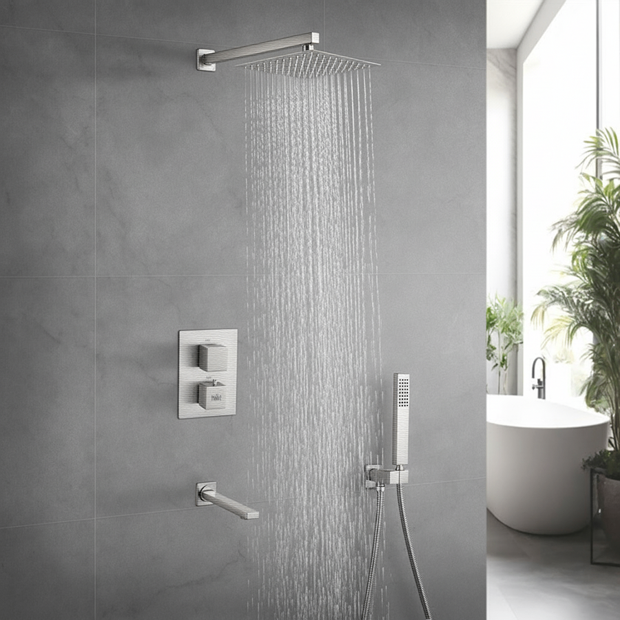 Душевая система Nett TSS-521 с термостатом, латунь, никель брашированная
