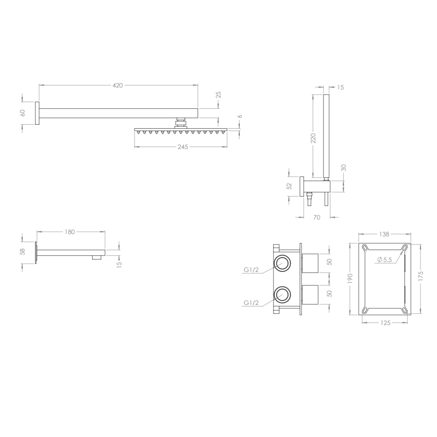 | Форма верхнего душа | Квадратная |