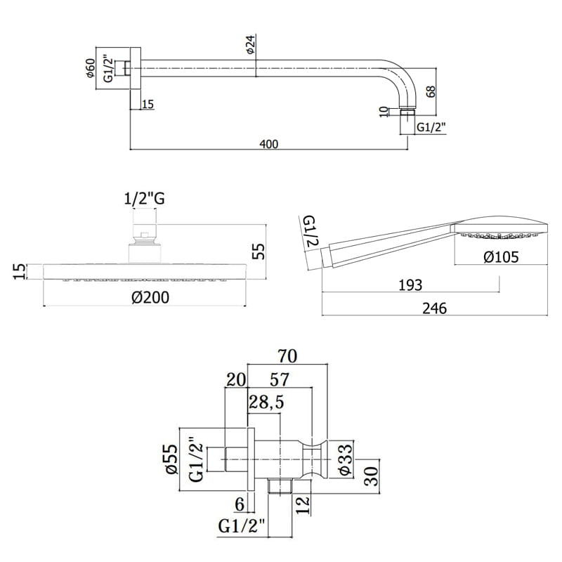 | Диаметр верхнего душа | 200 мм |