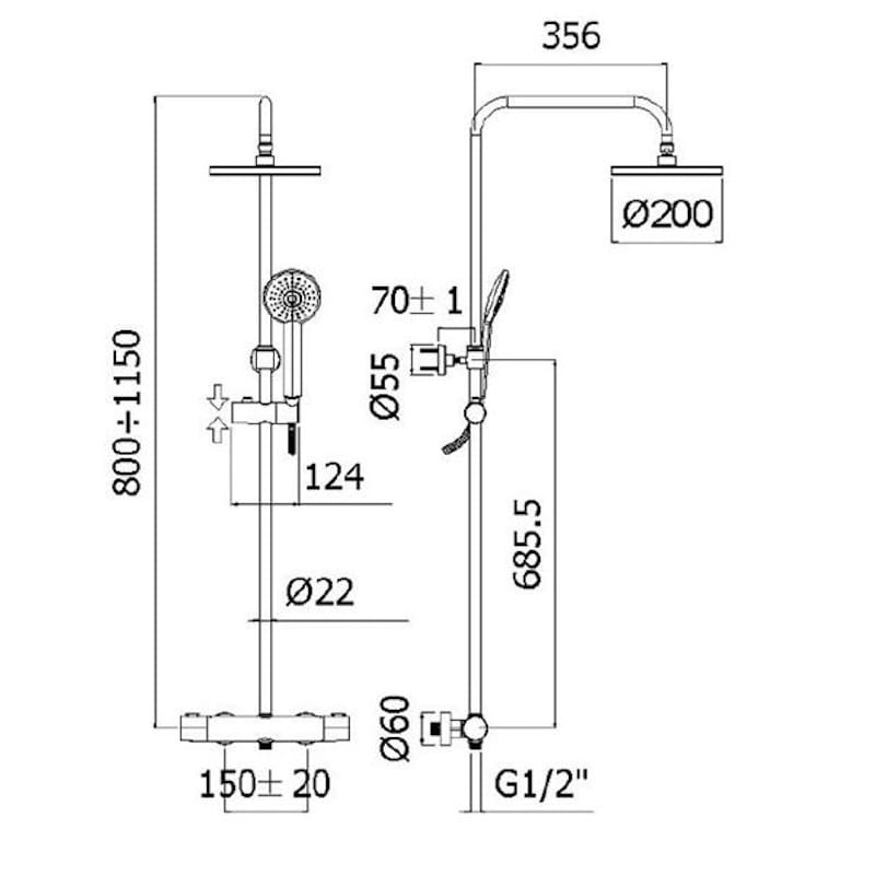 | Особенности душевой системы | С регулировкой штанги, С термостатом |