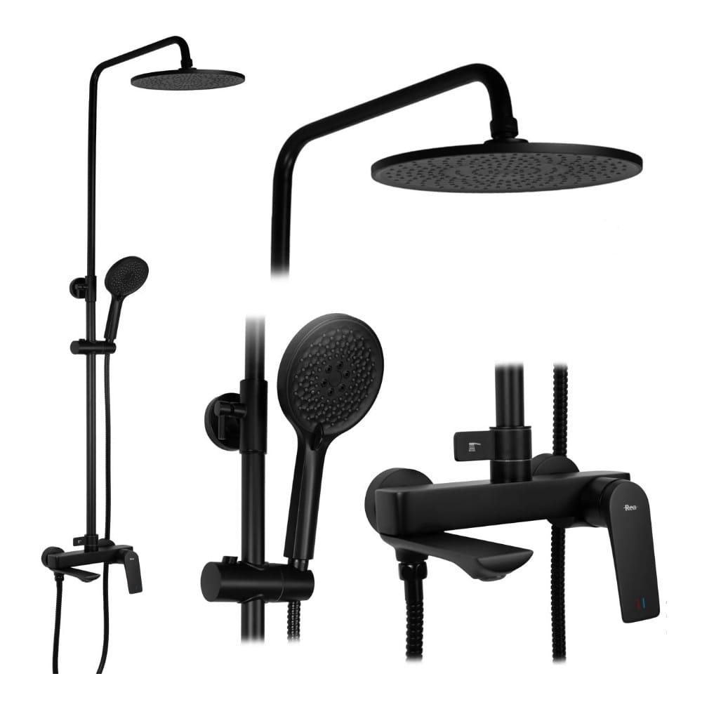 Душевая система Rea Avalon с изливом, латунь, черный матовая (REA-P8811)