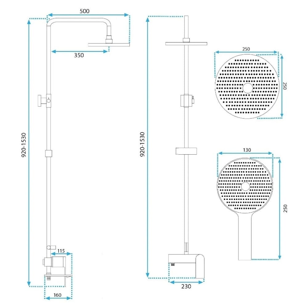 | Комплектация | Лейка для верхнего душа, Лейка для ручного душа, Душевая стойка, Душевой шланг, Инструкция, Крепление, Кронштейн для верхнего душа, Кронштейн для ручного душа, Смеситель |