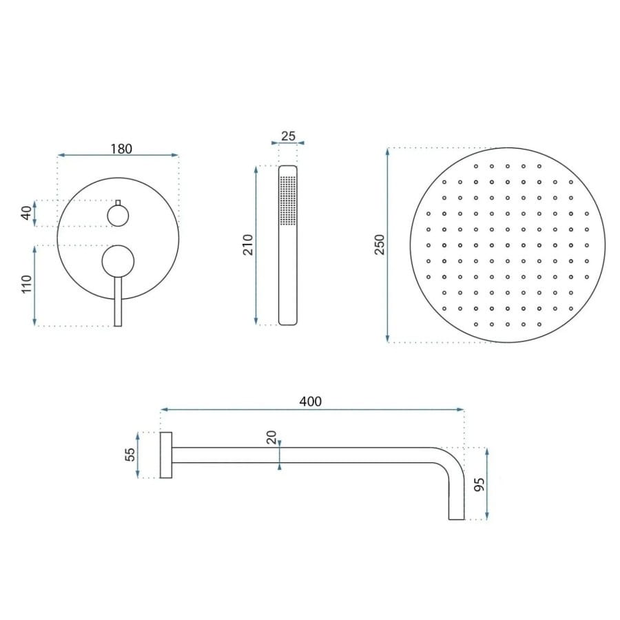 | Комплектация | Лейка для верхнего душа, Лейка для ручного душа, Box скрытого монтажа, Душевой шланг, Инструкция, Крепление, Кронштейн для верхнего душа, Кронштейн для ручного душа, Смеситель |