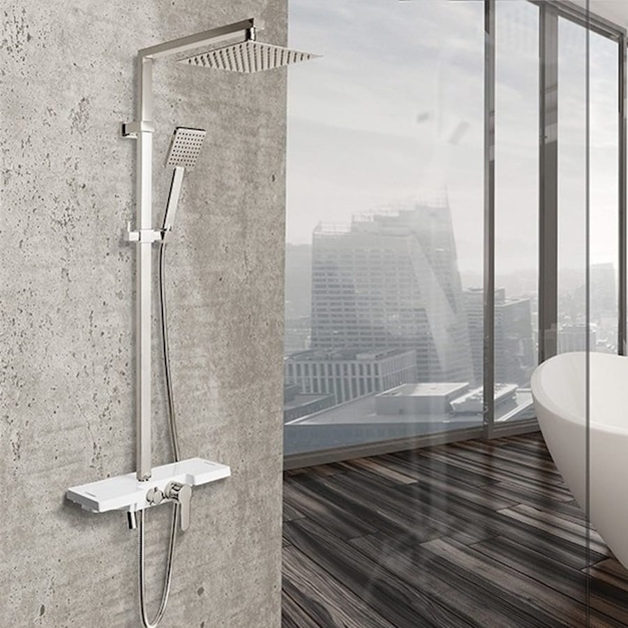 Душевая система Rea Lucas с полкой, нержавеющая сталь, хром (REA-P0221)