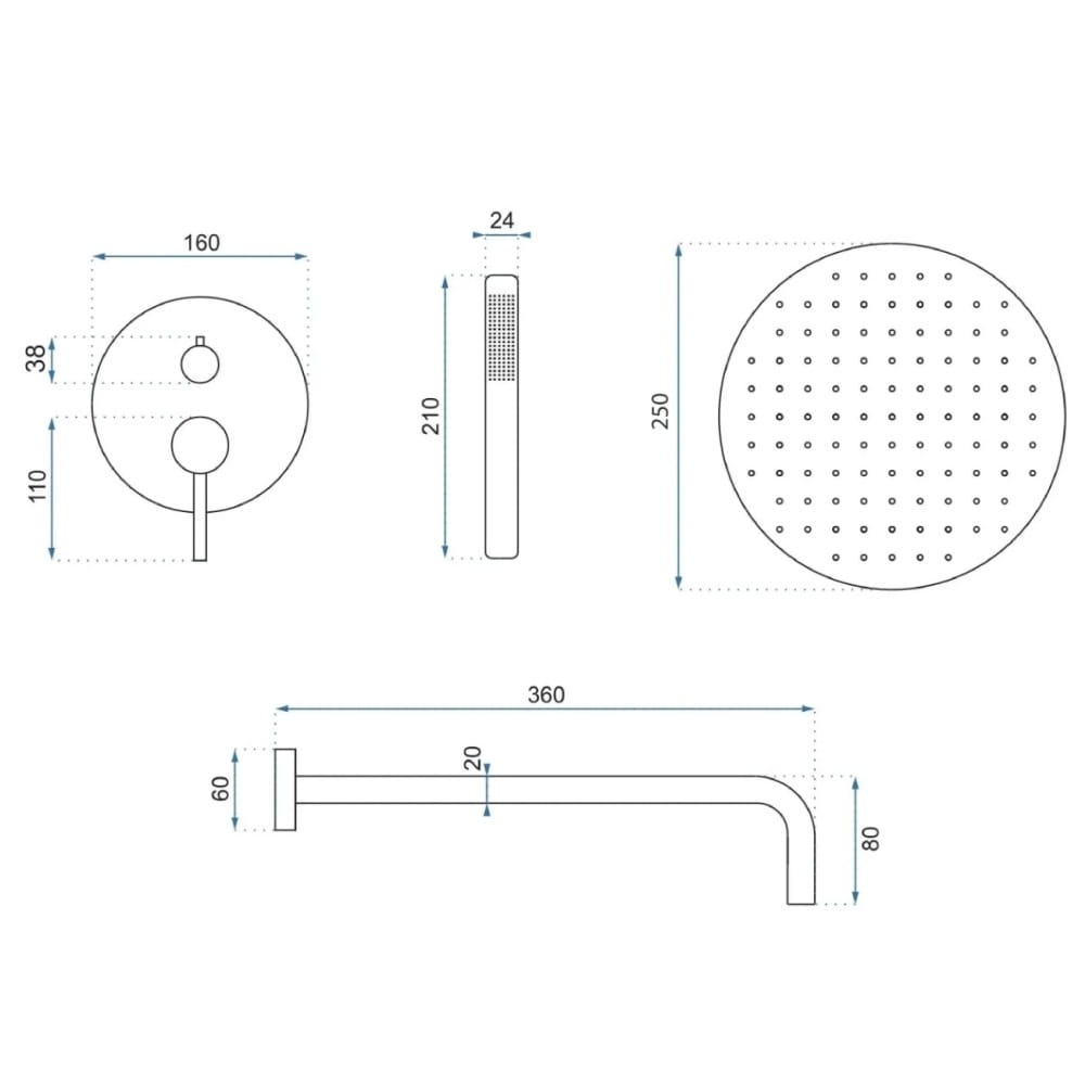 | Диаметр верхнего душа | 250х250 мм |