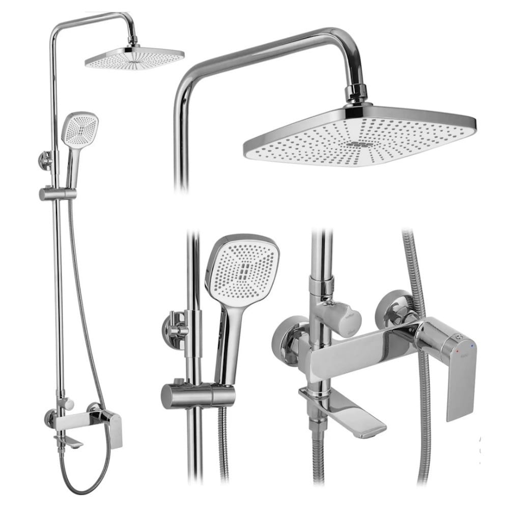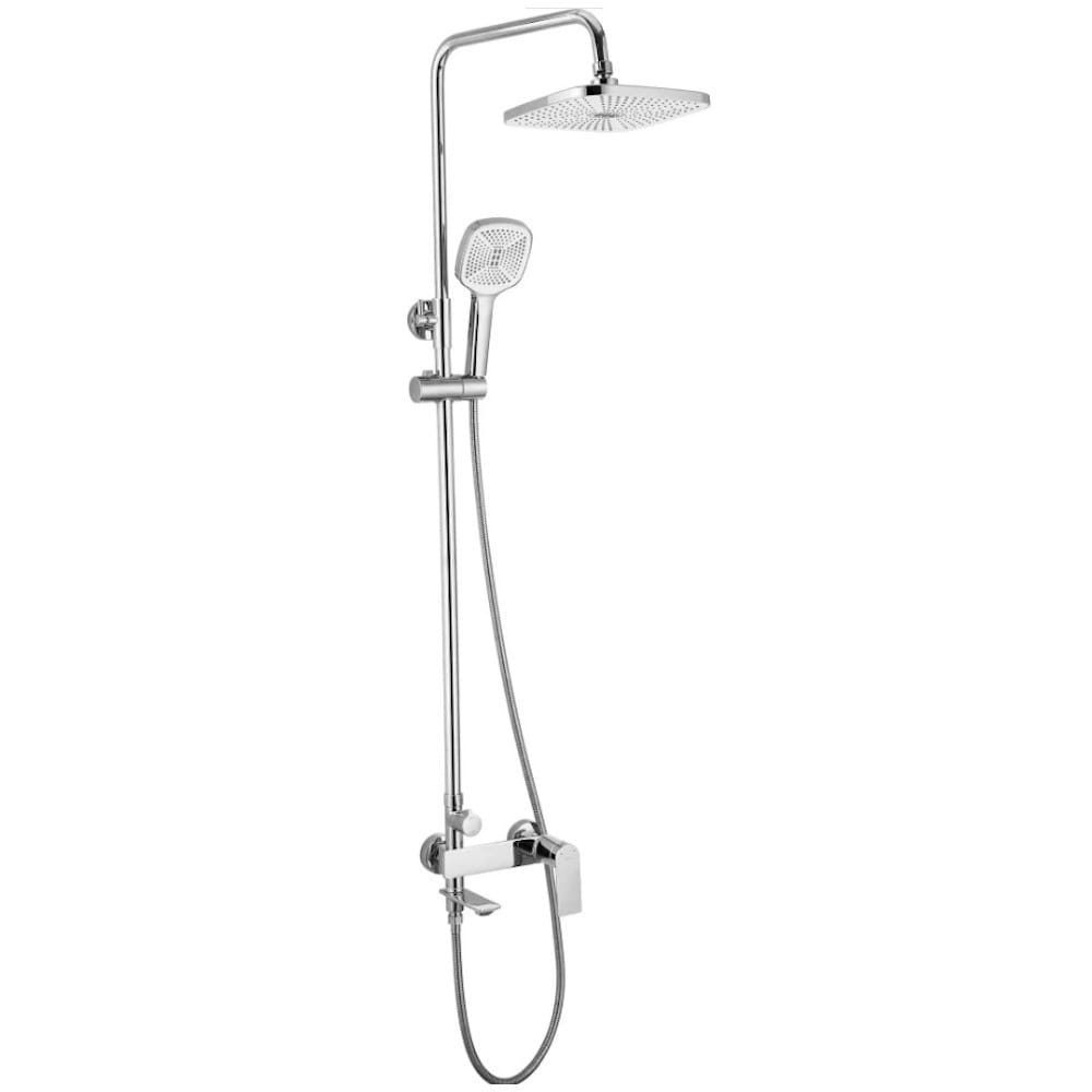 | Комплектация | Лейка для верхнего душа, Лейка для ручного душа, Душевая стойка, Душевой шланг, Инструкция, Крепление, Кронштейн для верхнего душа, Кронштейн для ручного душа, Смеситель |