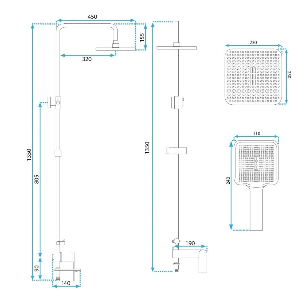 | Диаметр верхнего душа | 230×230 мм |