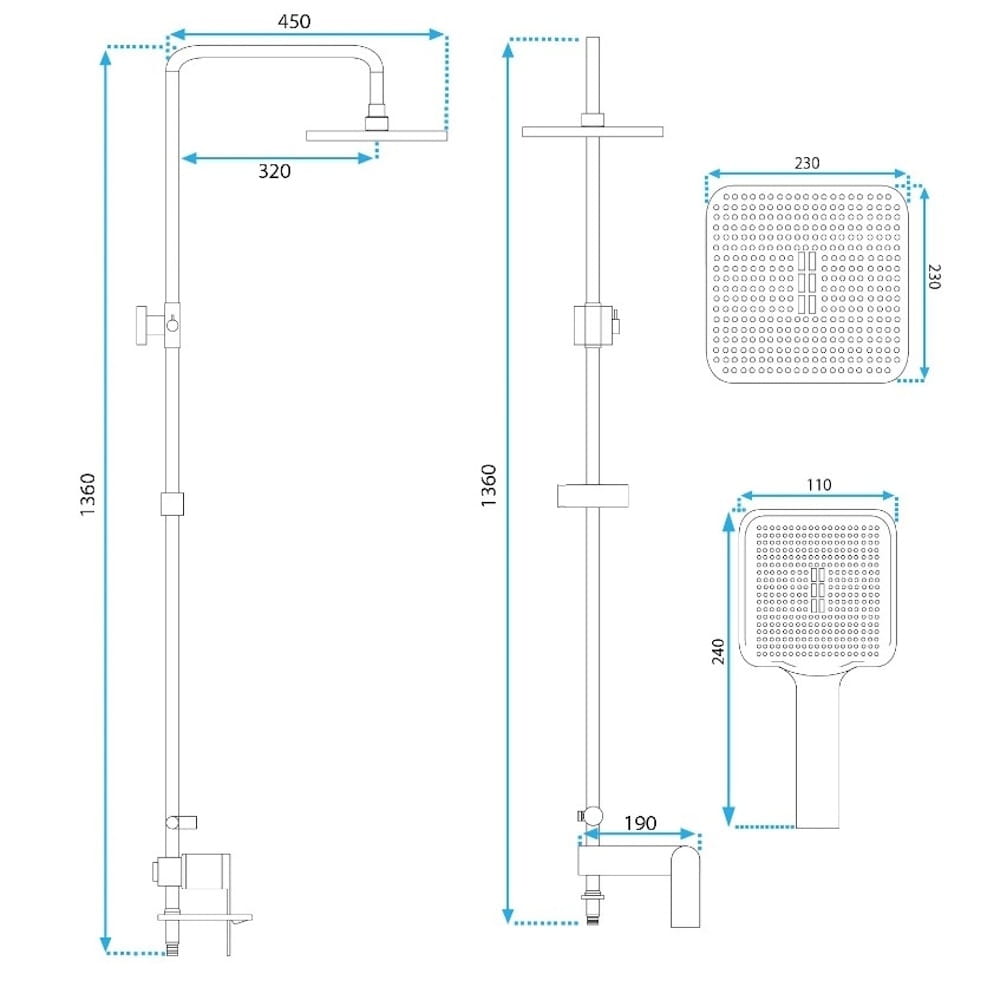| Диаметр верхнего душа | 230×230 мм |