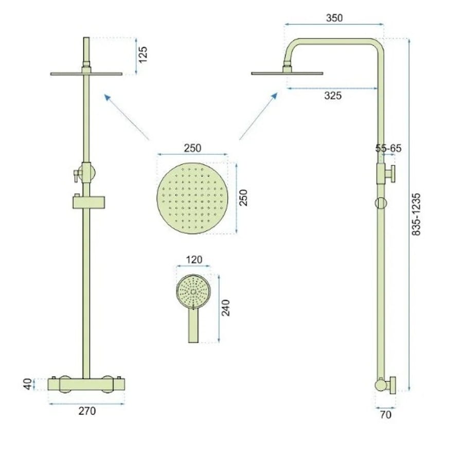 | Диаметр верхнего душа | 250 мм |