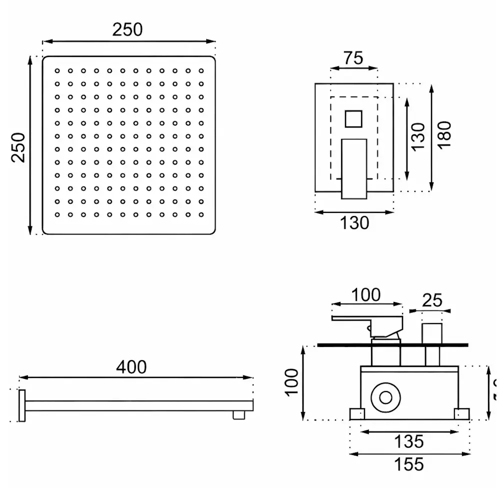 | Форма верхнего душа | Квадратная |
