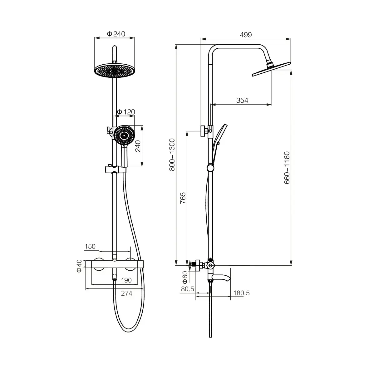| Особенности душевой системы | С регулировкой штанги, С термостатом |