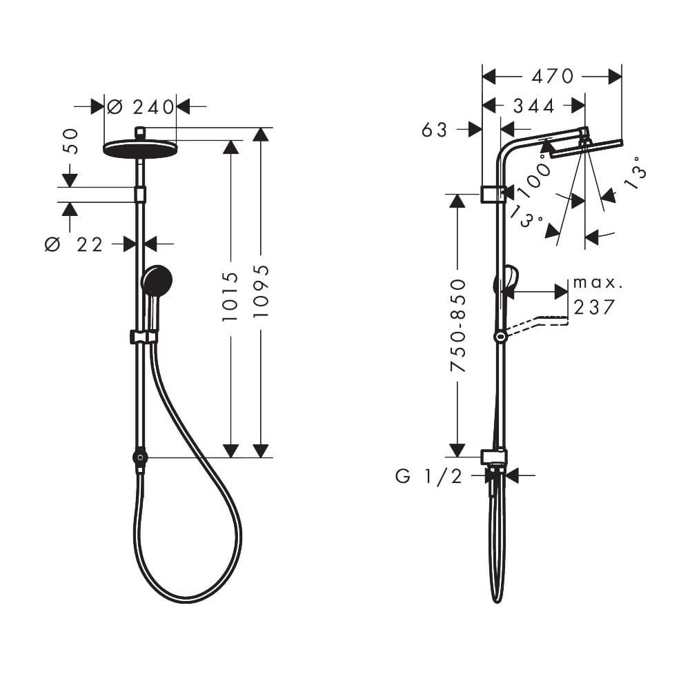 Душевая стойка Hansgrohe Activera S 240 1jet EcoSmart Reno Varia металл, черный матовый (28074670)
