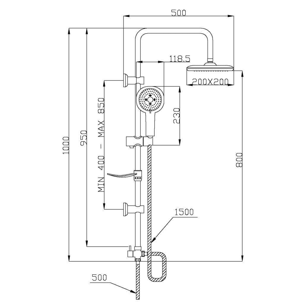 | Длина кронштейна для верхнего душа, мм | 400 |