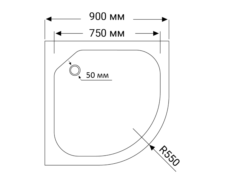 Душевой поддон RJ Duct 90×90 полукруглый, белый (90RZ812)