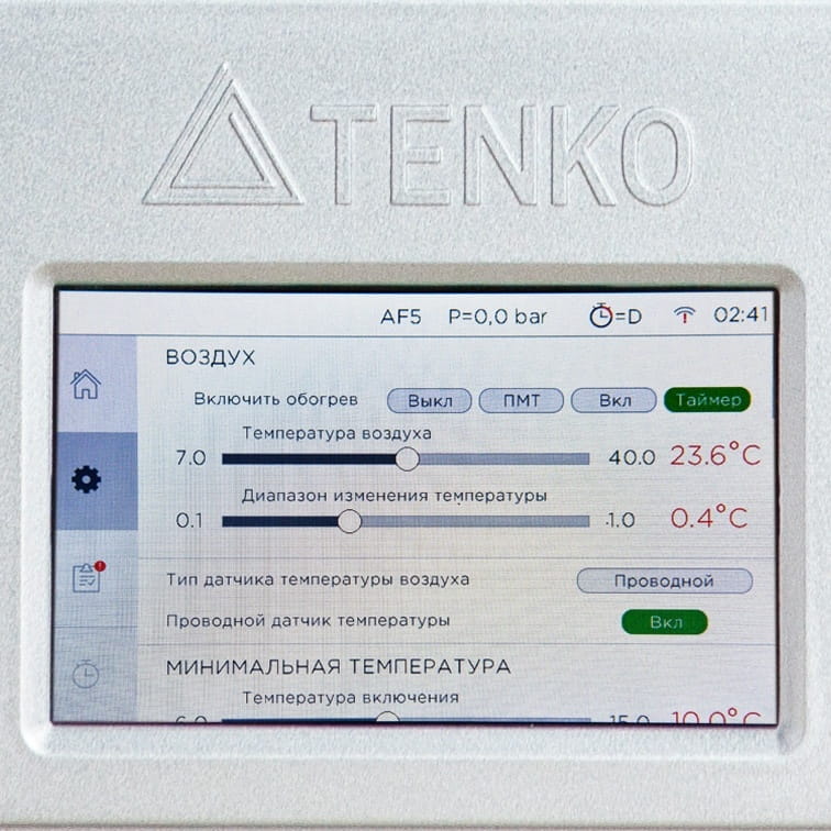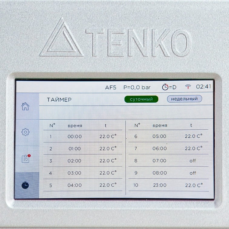 | Оснащение | Встроенное устройство защитного отключения УЗО, Полная гидравлическая группа безопасности производства ЕС, Сенсорный цветной дисплей, Циркуляционный насос с частотным управлением |