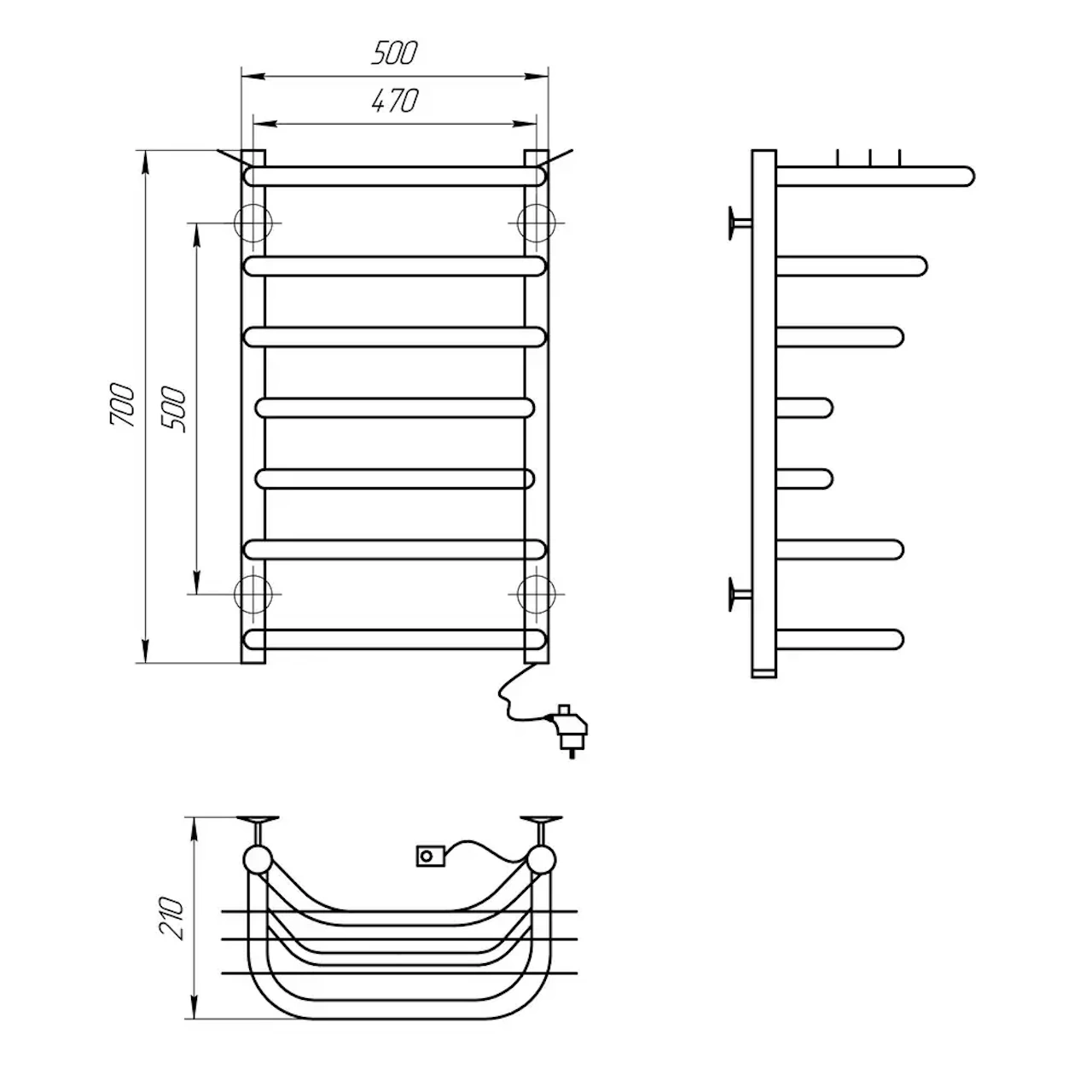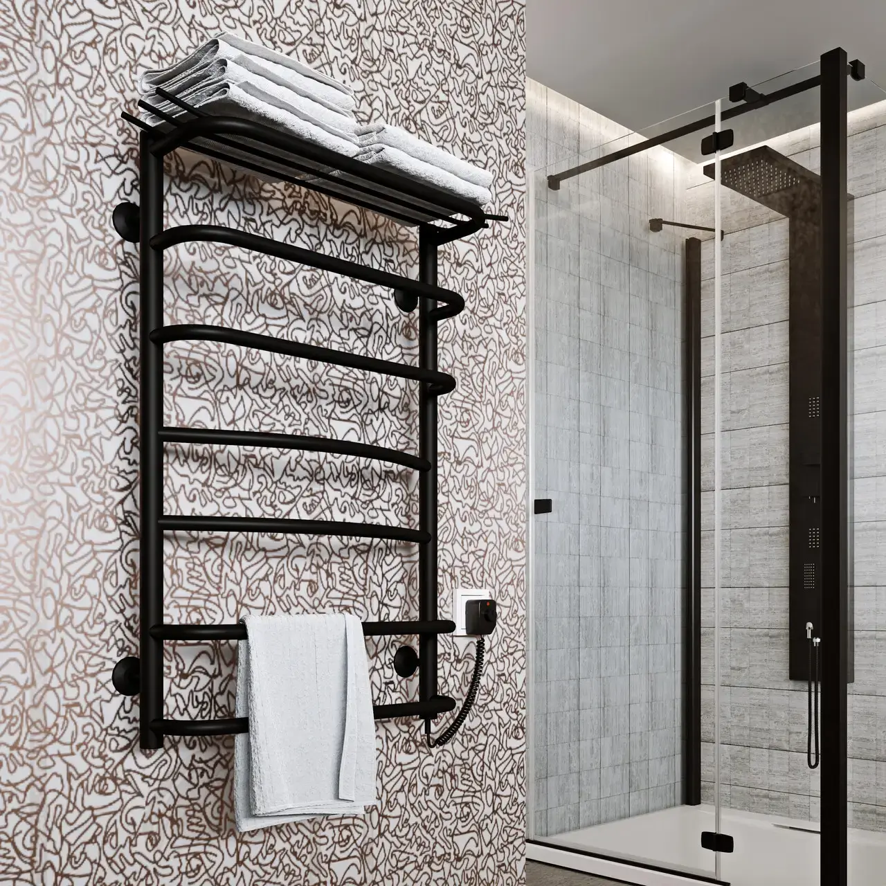 Электрический полотенцесушитель Kosser Канна 700х500 ER вертикальный, черный + регулятор (ДК01ERB)