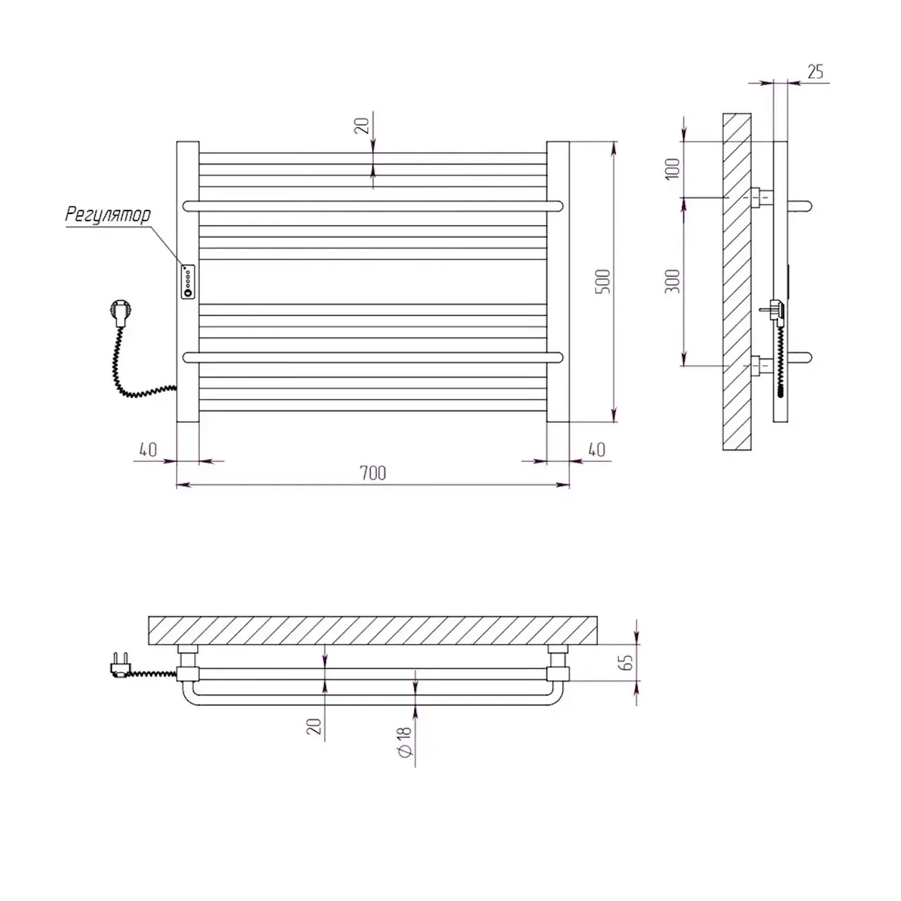 | Ширина полотенцесушителя, мм | 700 |