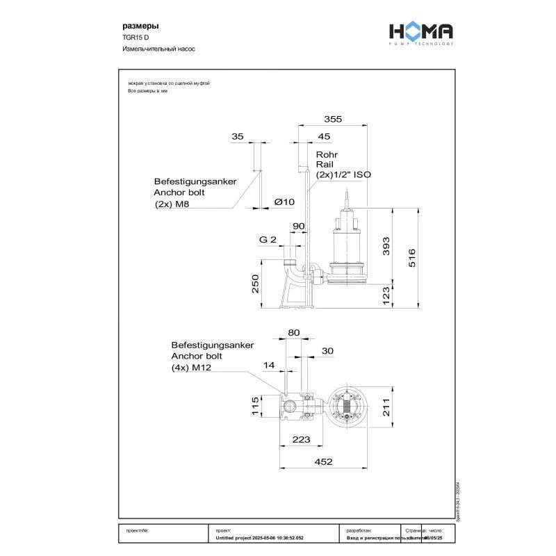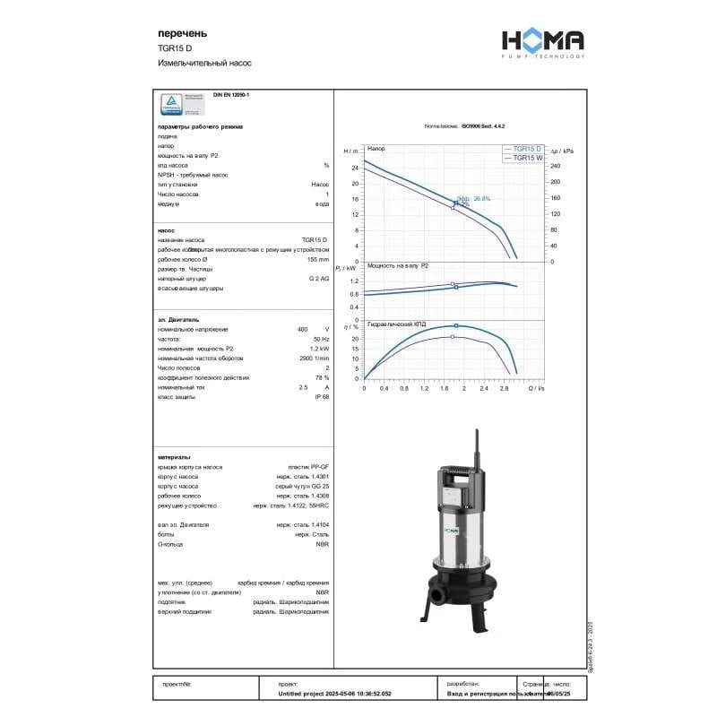 Фекальный насос Homa Barracuda TGR 15D 1,2 кВт H 26 м Q 183 л/мин с измельчителем (12005253)