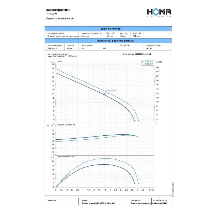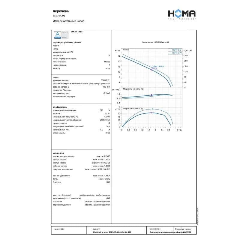 Фекальный насос Homa Barracuda TGR 15WA 1,2 кВт H 24 м Q 173 л/мин с измельчителем (12005251)