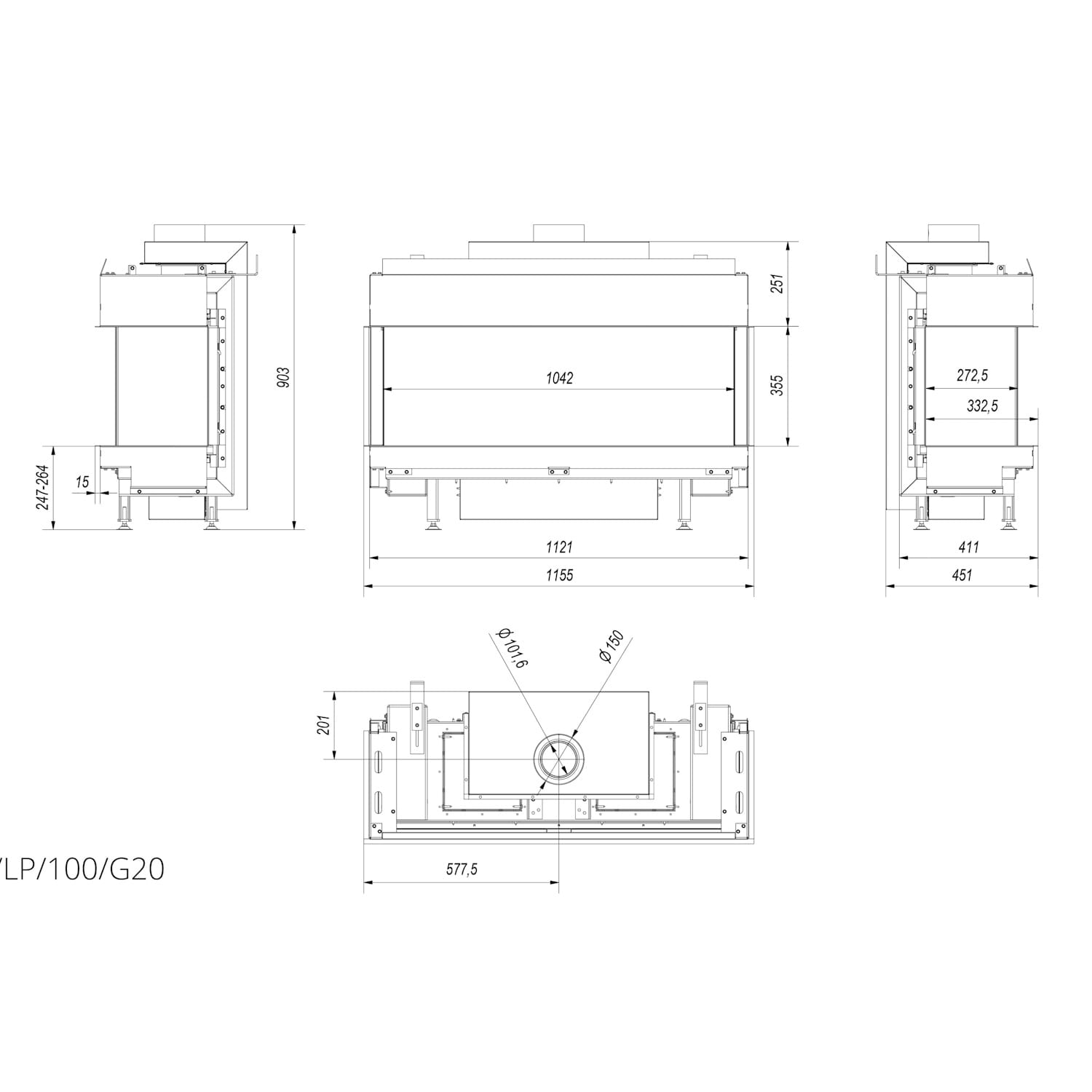 Газовый камин Kratki LEO 100 L/P NG 10 кВт сталь, на природном газе, черный (5901350019320)