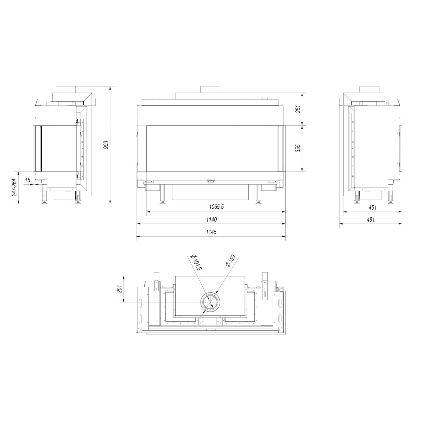 Газовый камин Kratki LEO 100 P NG 10 кВт сталь, на природном газе, черный (5901350066737)