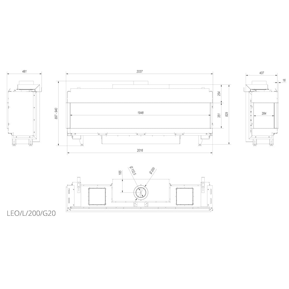 Газовый камин Kratki LEO 200 L LPG 17 кВт сталь, на пропане, черный (5901350077252)