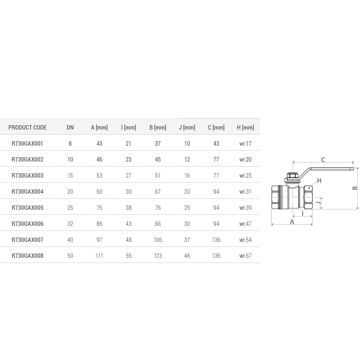 Газовый кран Giacomini R730GA 1/2″ ВВ прямой, латунь (R730GAX003)