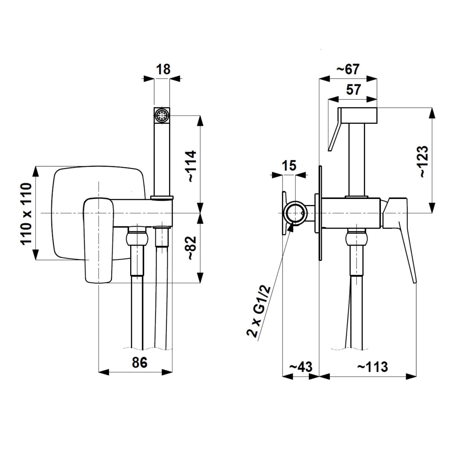 | Комплект гигиенического душа | С держателем для душа, С душевым шлангом, С ручной лейкой, С шланговым подсоединением, Со встроенной частью |