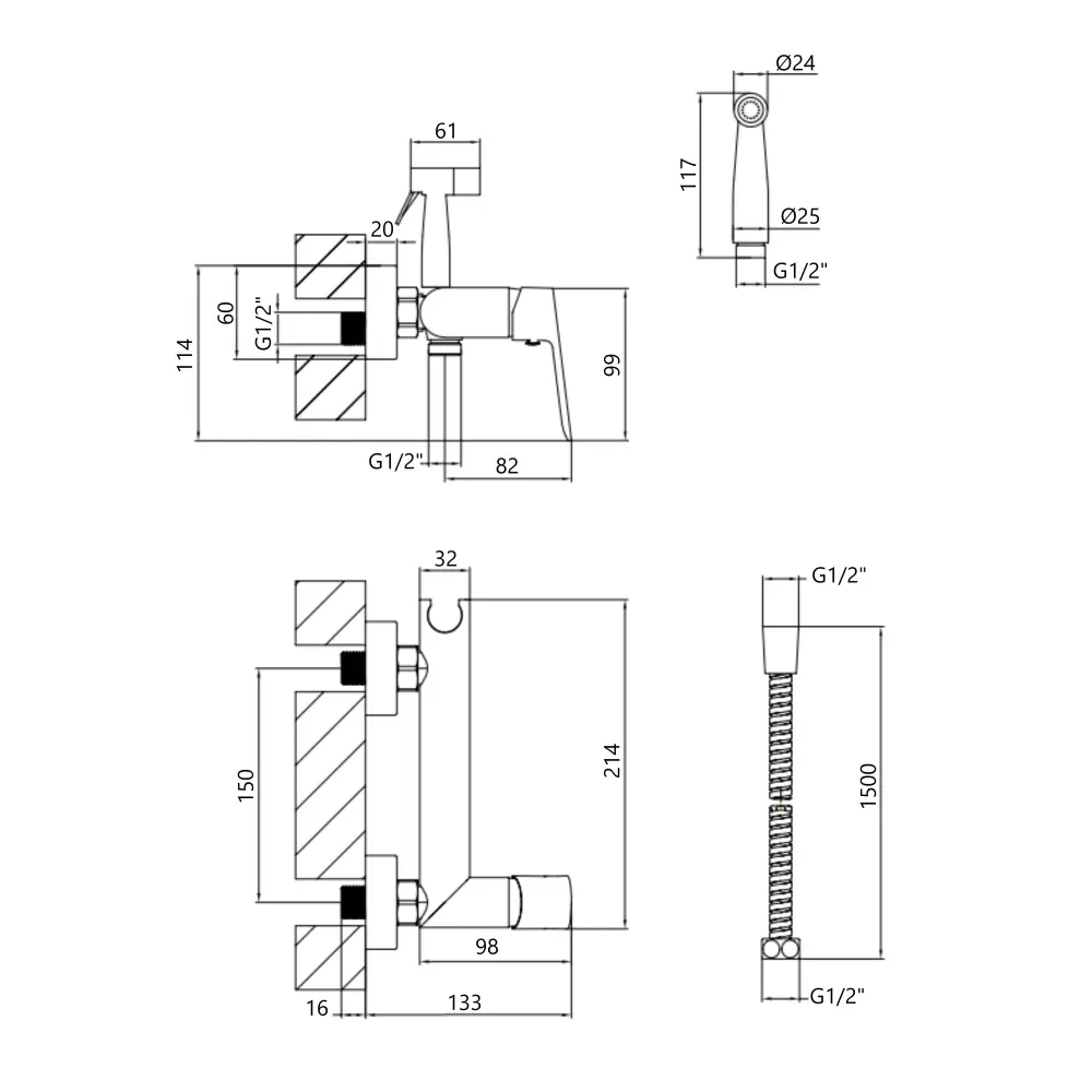 | Комплект гигиенического душа | С держателем для душа, С душевым шлангом, С ручной лейкой, С шланговым подсоединением |