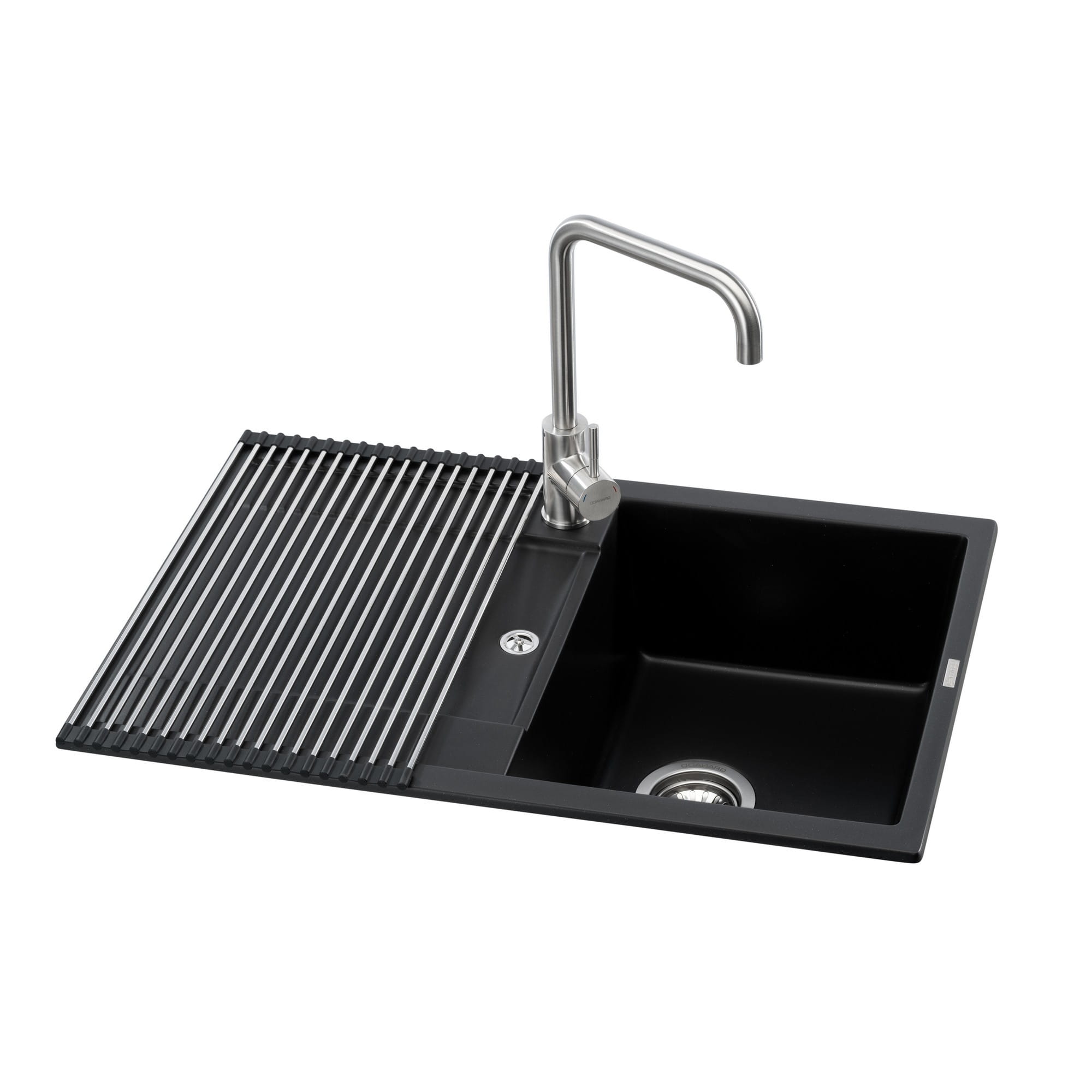Гранитная кухонная мойка GRANADO Valencia 780×500 врезная, прямоугольная, чёрная матовая, чаша справа (ksg0701R)
