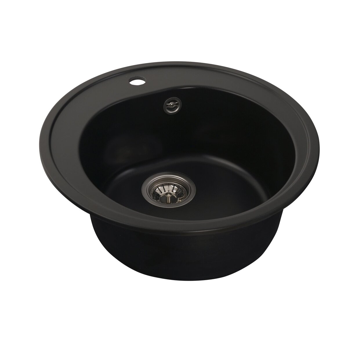 Гранитная кухонная мойка Valeso Luna 510×510 врезная, круглая, черная матовая (SP000047496)