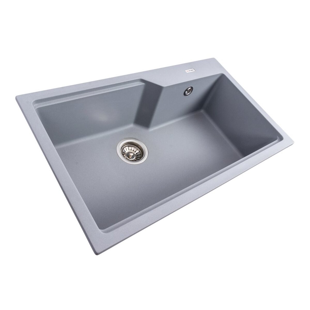 Гранитная кухонная мойка Valeso Nika 750×450 врезная, прямоугольная, серый металлик (SP000046045)