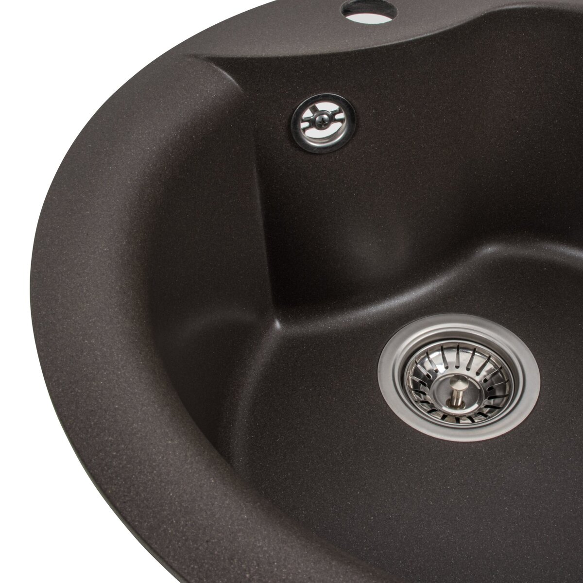 Гранитная кухонная мойка Valeso Turas 480×480 врезная, круглая, темная скала матовая (SP000047210)