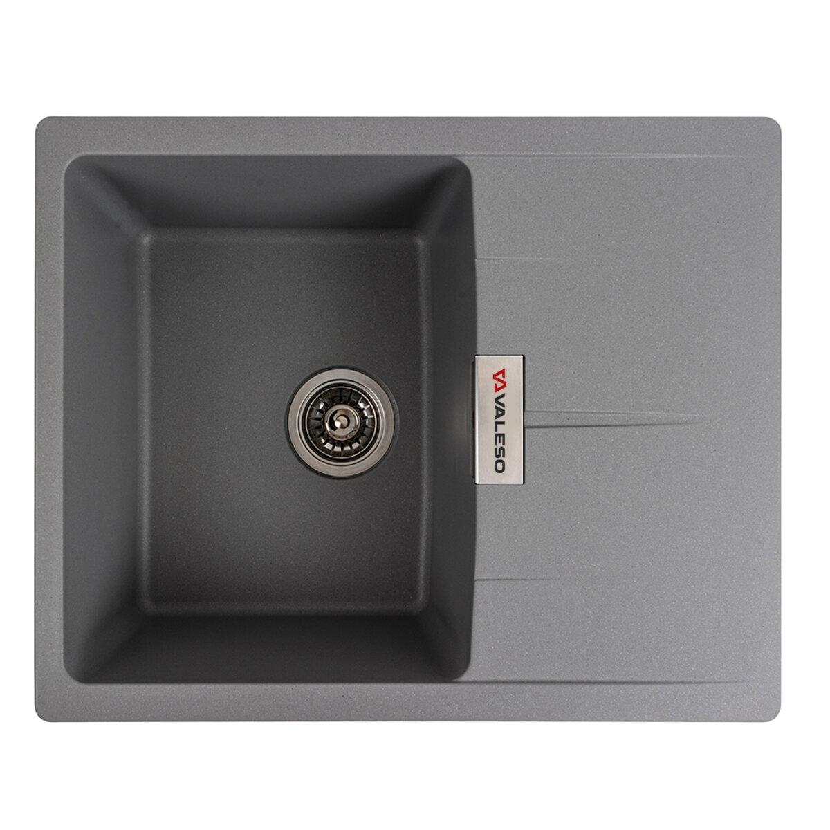 Гранитная кухонная мойка Valeso Zirkone 620×500 накладная, прямоугольная, серый металлик (SP000047067)