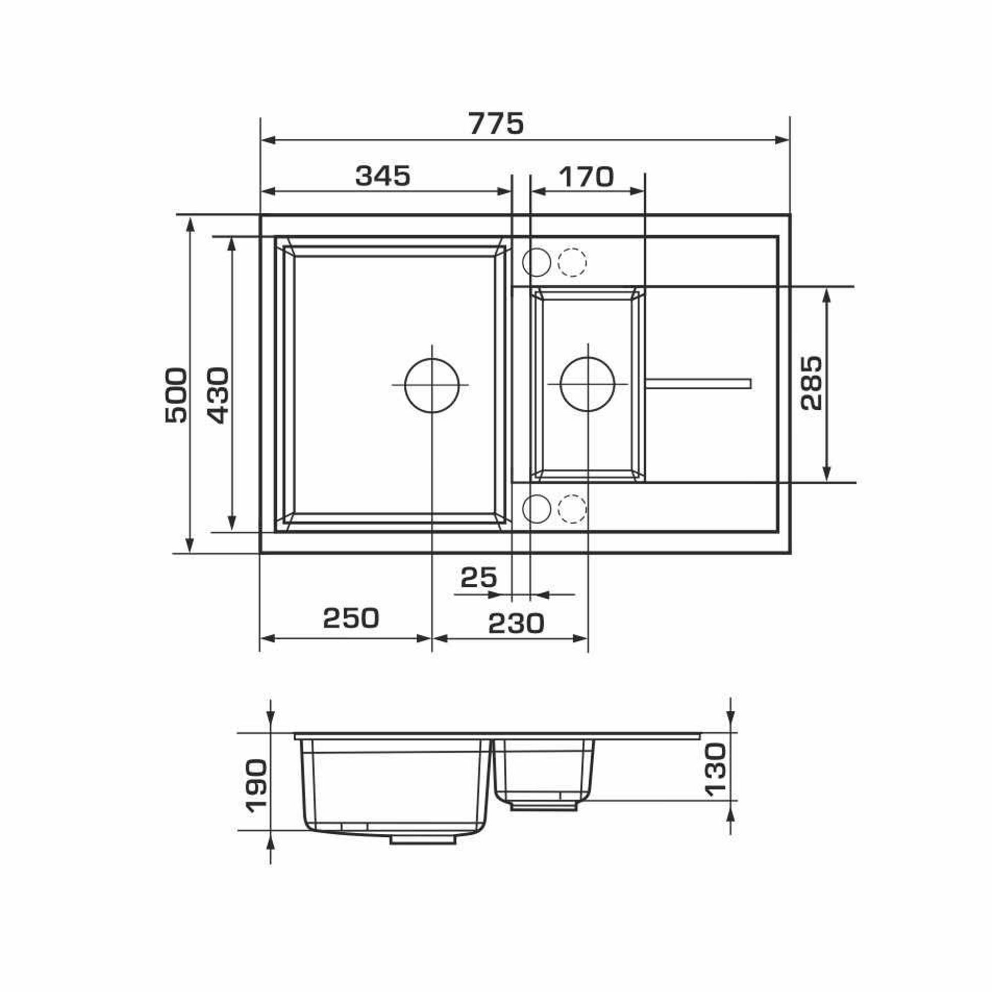 | Длина мойки, мм | 775 |