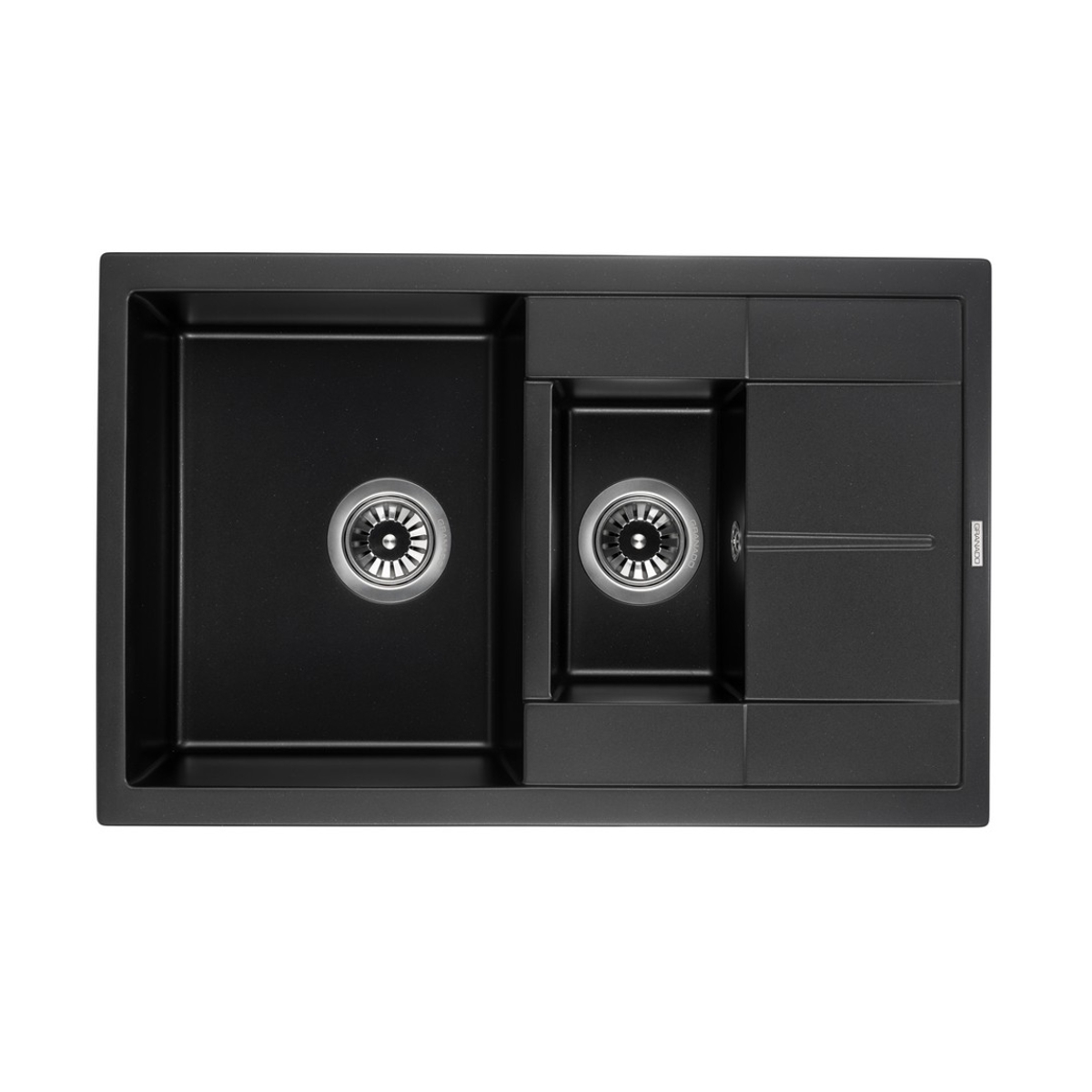Гранитная мойка для кухни GRANADO Leon 775×500 врезная, прямоугольная, черная матовая