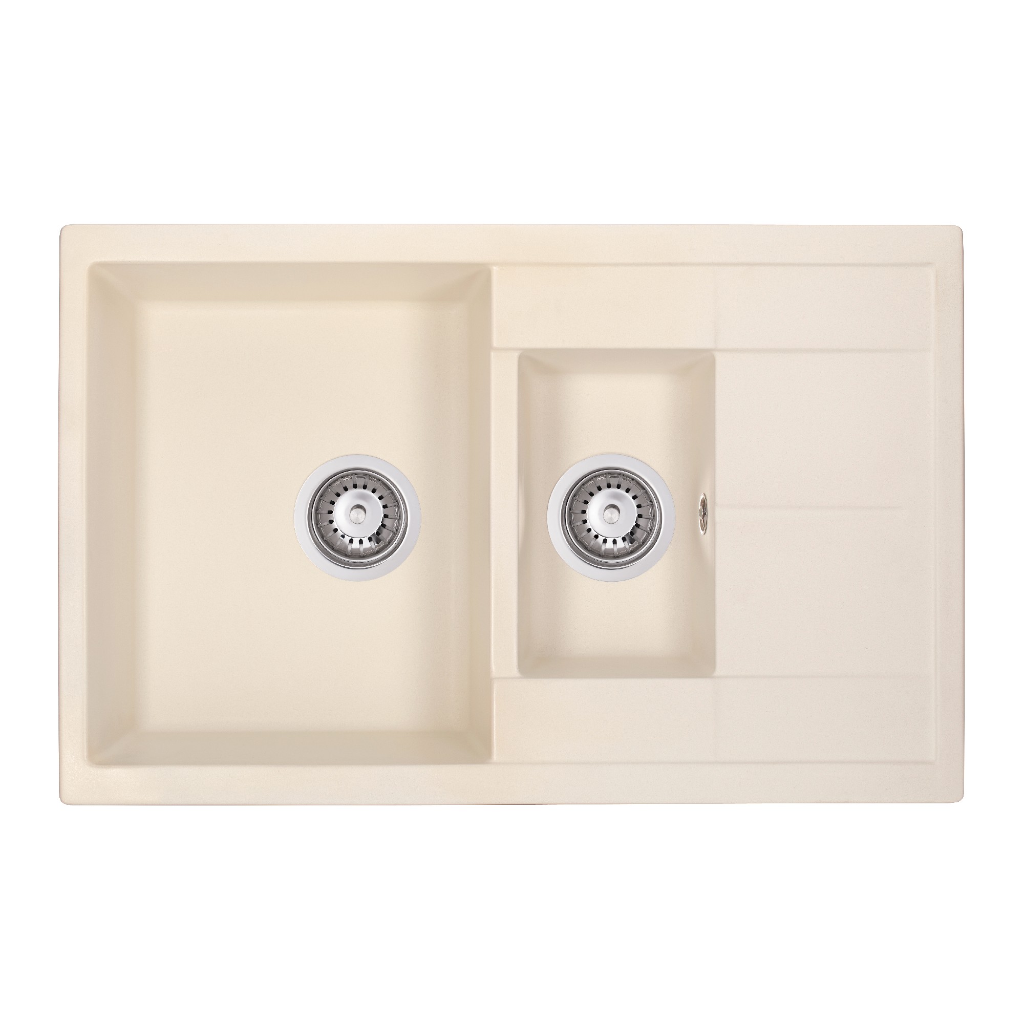 Гранитная мойка для кухни GRANADO Leon 775×500 врезная, прямоугольная, слоновая кость матовая