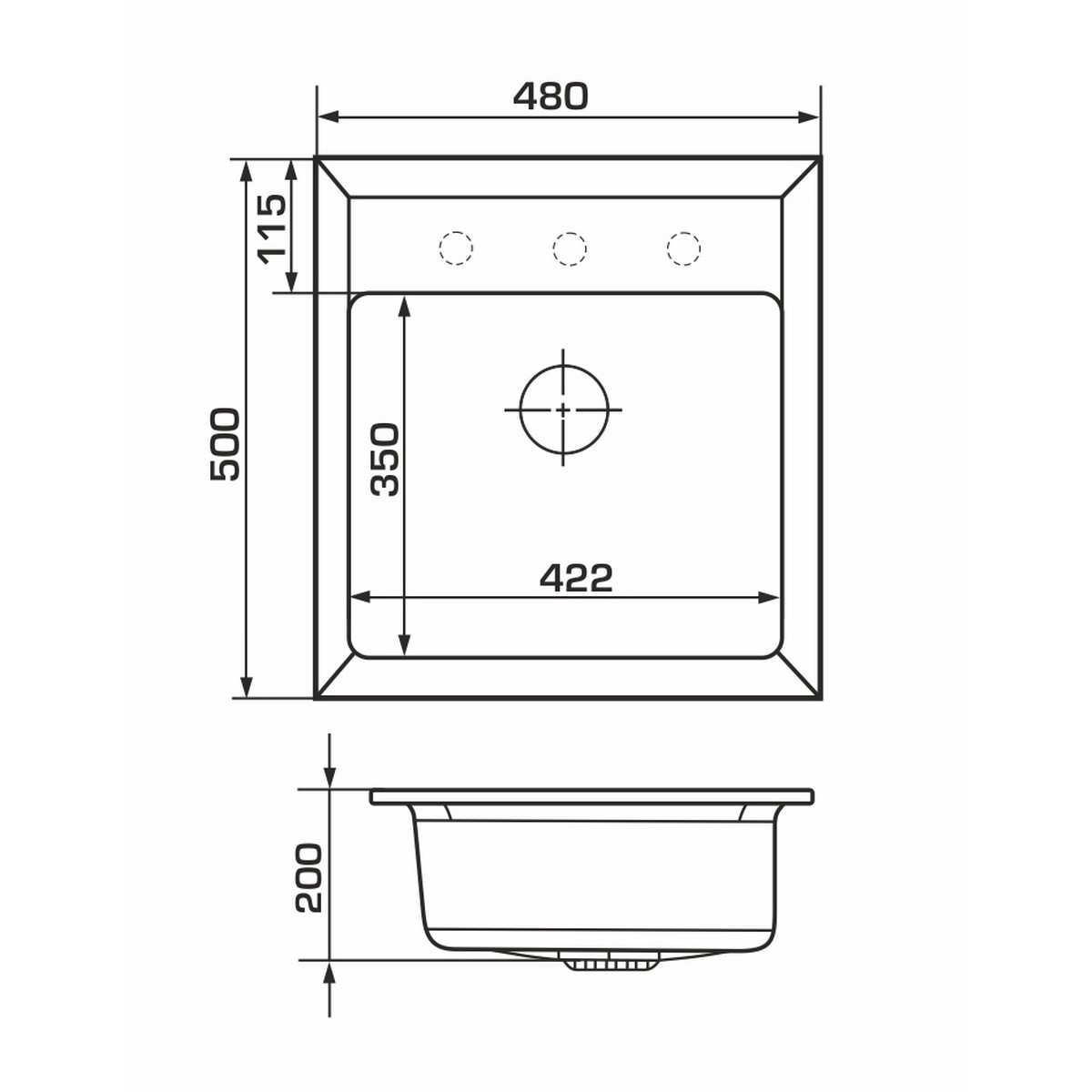 | Глубина чаши, мм | 200 |