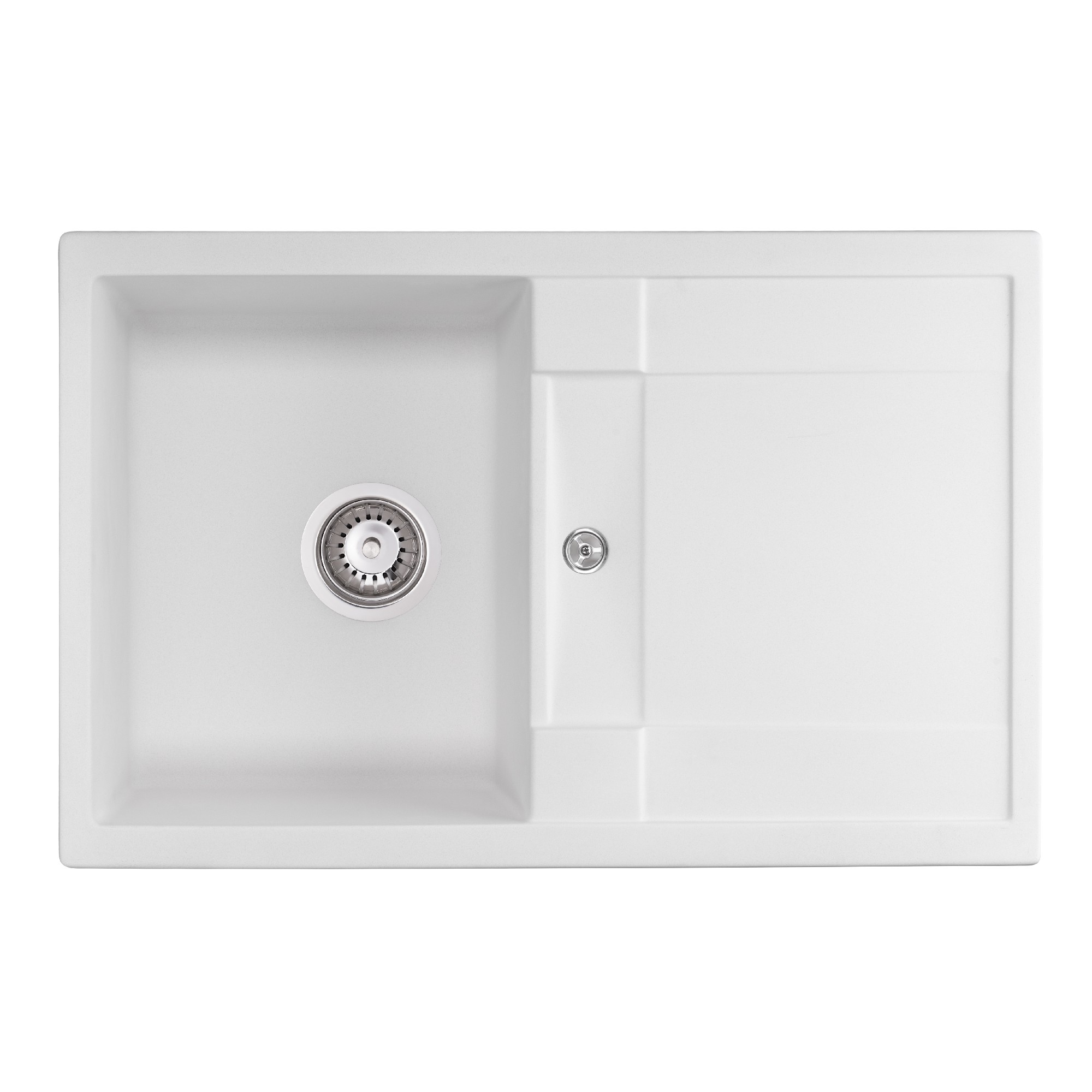 Гранитная мойка для кухни GRANADO Valencia 775×495 врезная, прямоугольная, белая матовая